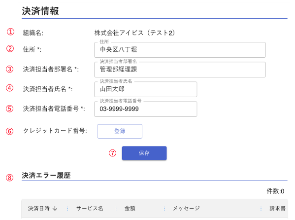 - 決済担当者の電話番号を入力します。